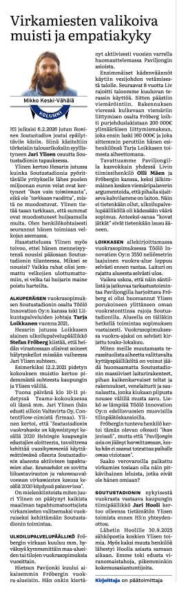 HS julkaisi 6.2.2026 jutun Ikoninen Soutustadion joutui epäilyttäviin käsiin. Siinä käsiteltiin törkeisiin talousrikoksiin syyllistyneen Jari Ylisen osuutta Soutustadionin tapauksessa.